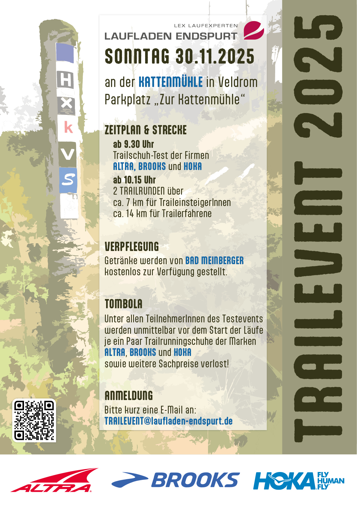 Damit wir einen Überblick bekommen, schicken Sie bitte zur Anmeldung eine Email: TRAILEVENT@laufladen-endspurt.de